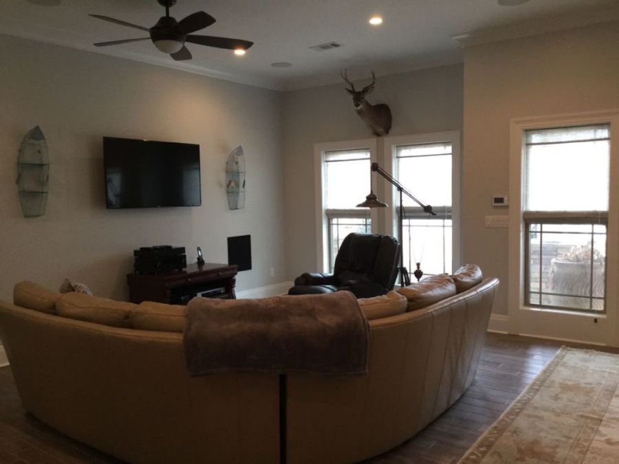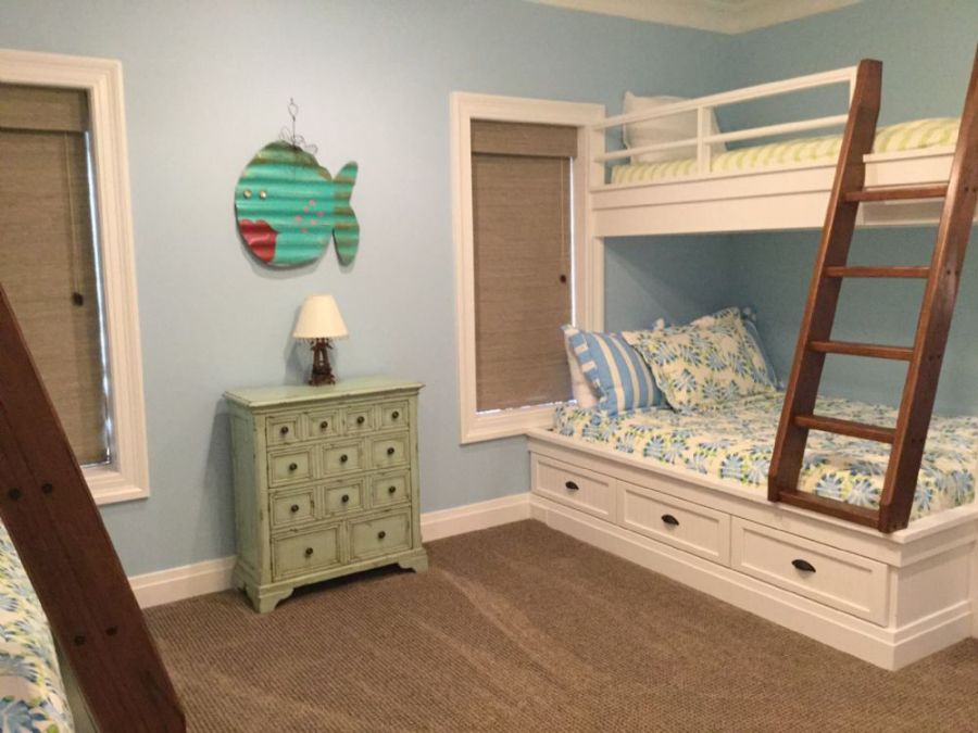 Beautiful home located on Lake Martin! This 3 story home was built to accommodate multiple families and friends to enjoy a fabulous vacation on the lake! The two bedrooms on the top floor each have 2 bunk beds, twins on top and fulls on the bottom. These two bedrooms are conjoined with a jack-n-jill style bathroom. There are 4 master bedroom suites, 2 on the middle floor and 2 on the bottom floor, each have their own bathroom. There are two living room areas, one on the main floor and one on the bottom floor that opens up to the beautiful back yard. There is a half bath on the bottom floor that has an outside door to the back yard, for use while playing on the lake.